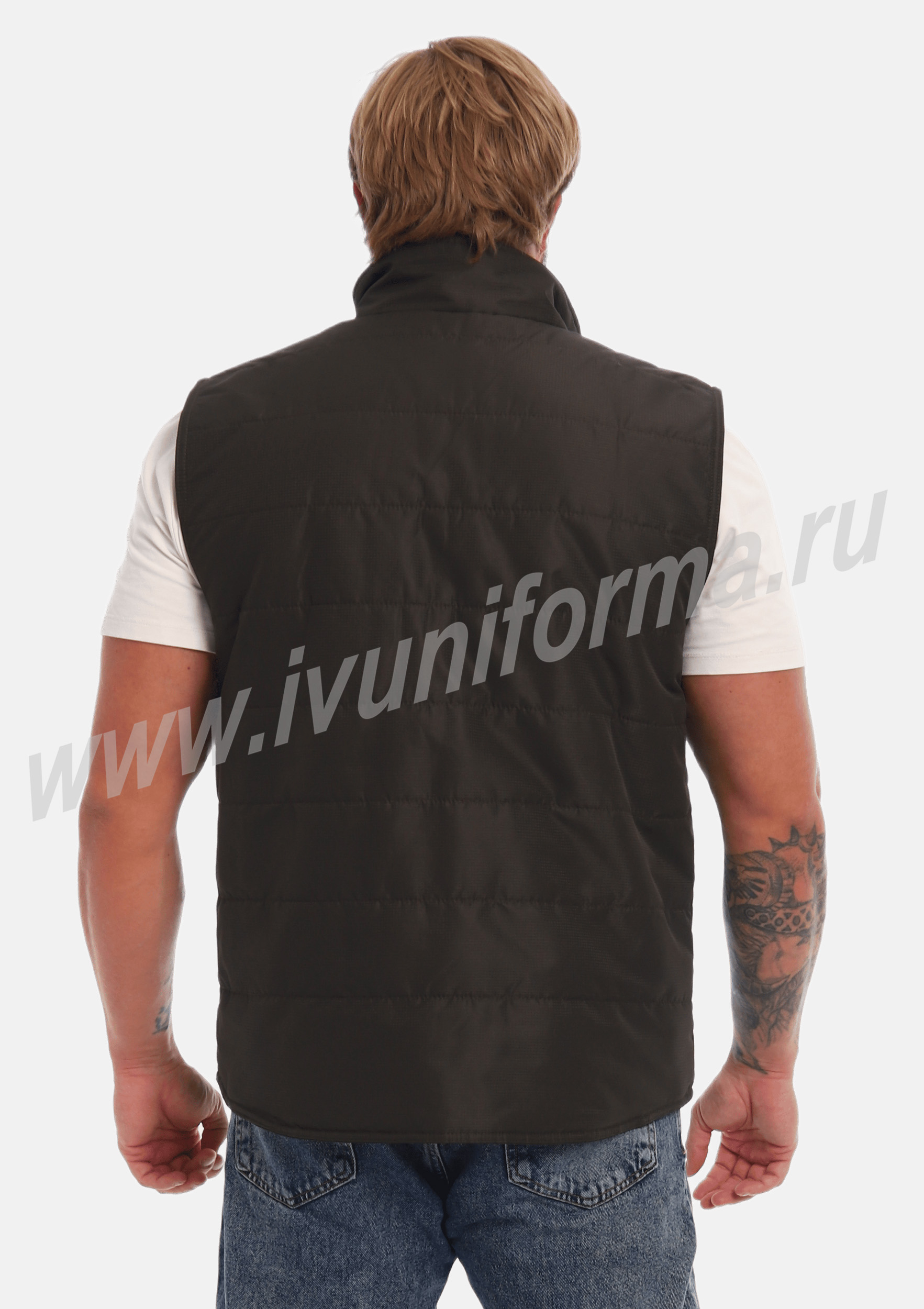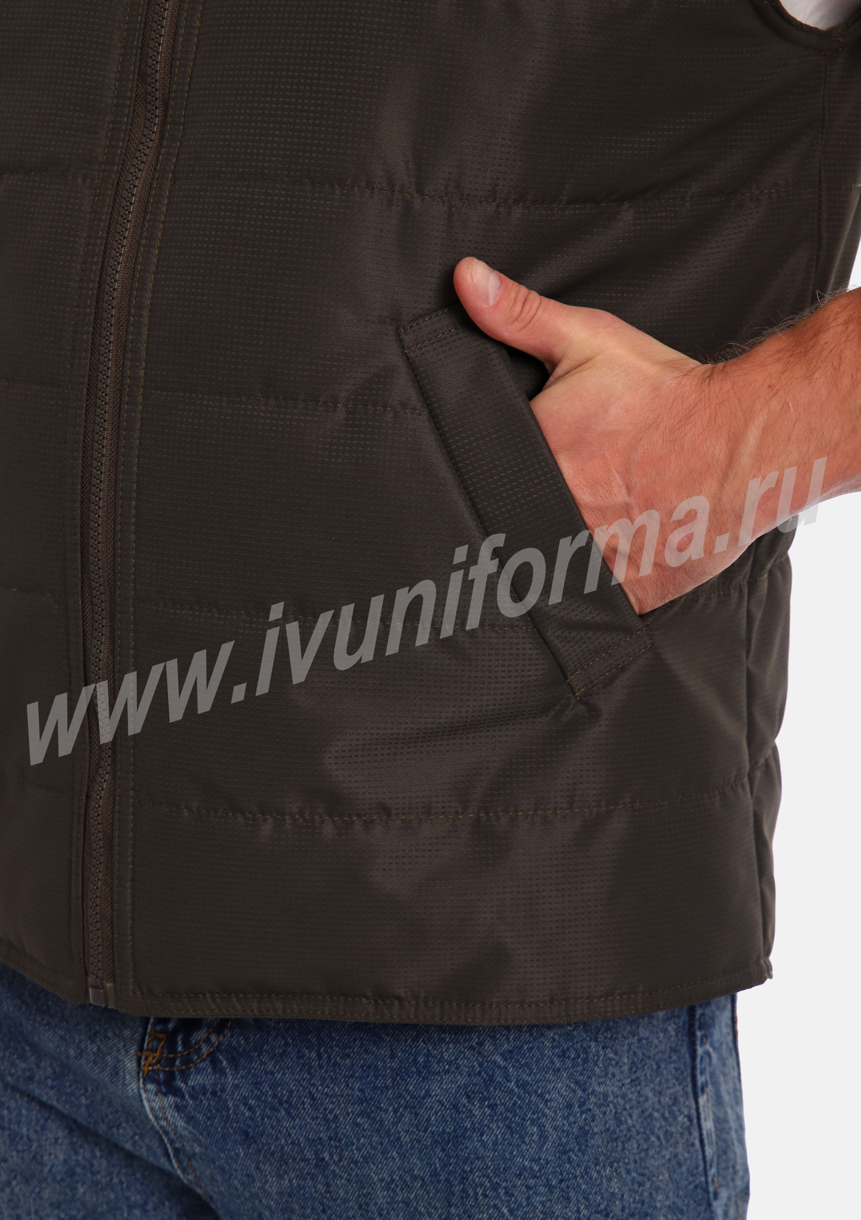 Жилет утепленный на молнии с двумя боковыми карманами в нижней части. Внутренняя часть жилета выполнена из ткани флис. В качестве утеплителя используется синтепон. Жилет является универсальным для использования как мужчинам, так и женщинам.